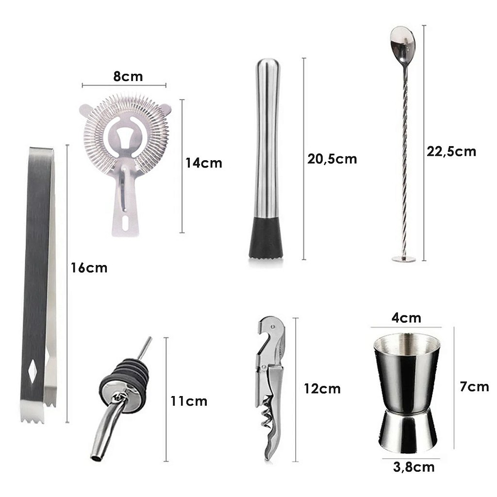 Modelo: Kit Barman Profissional Coqueteleira 500ml 11 Peças